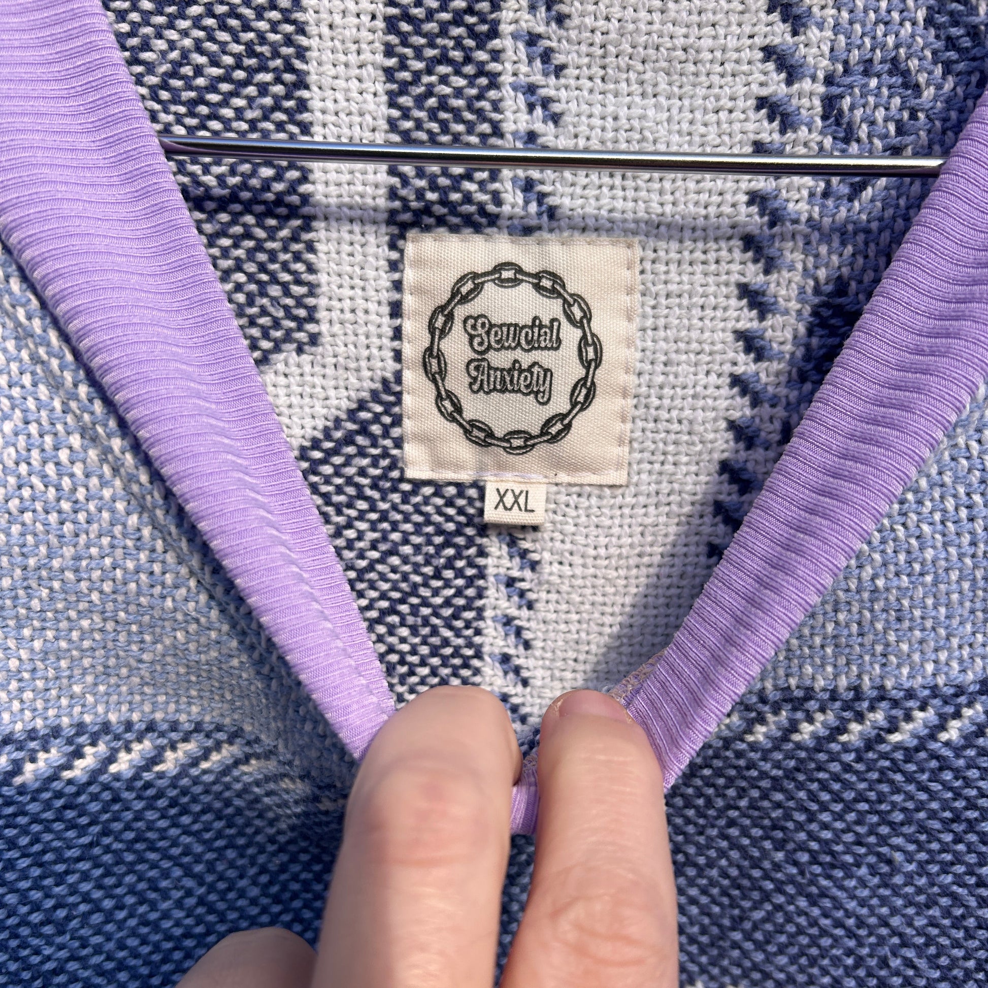 Upcycled woven blanket made into a slightly oversized sweater.